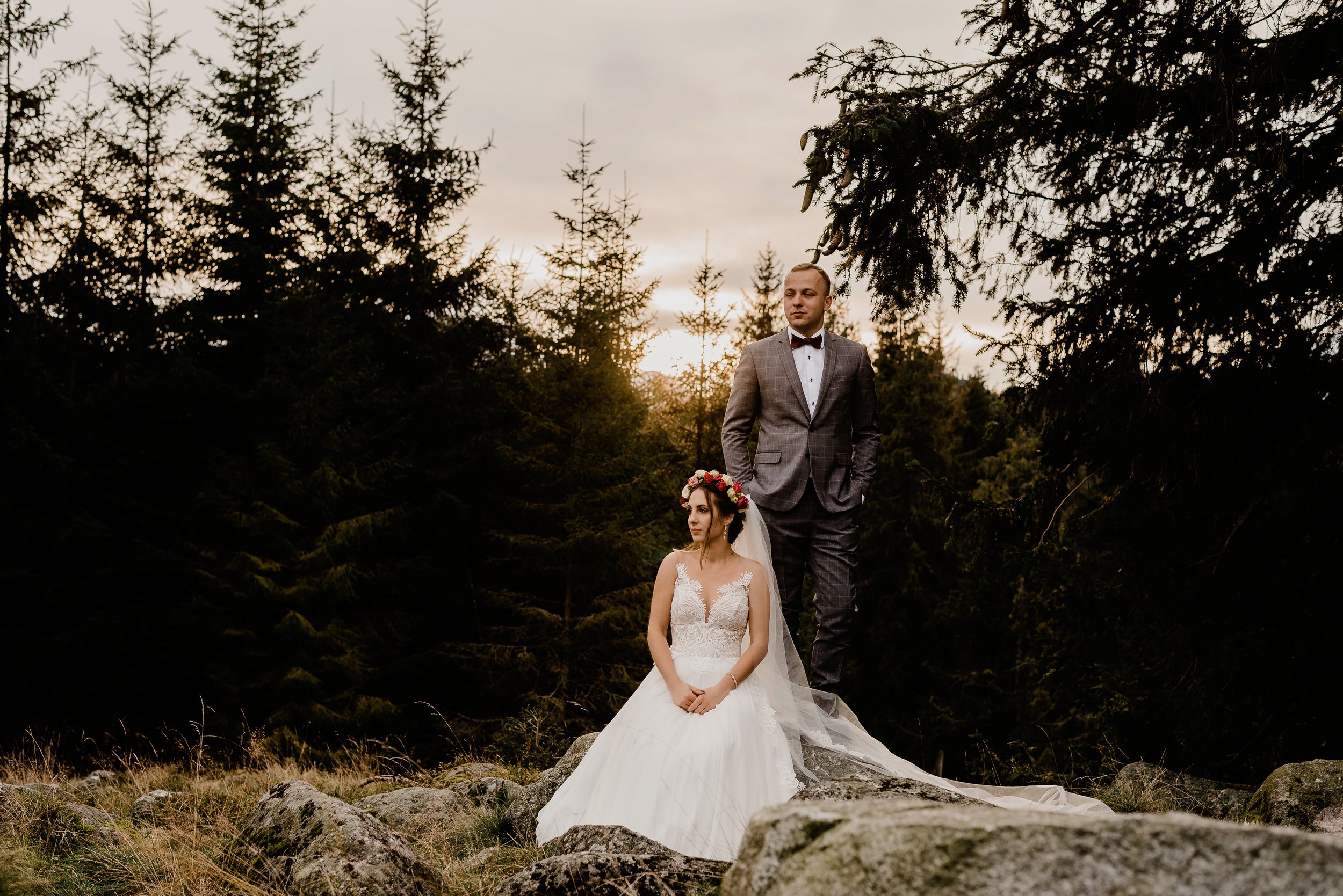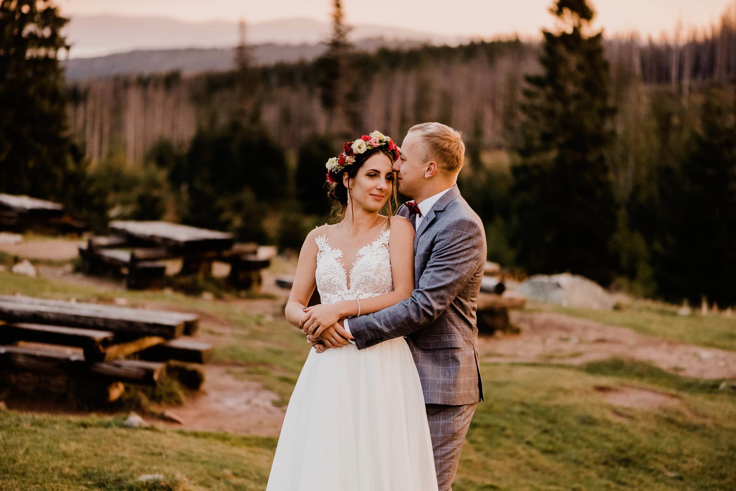 Nie ukrywamy – sesje w górach to dla nas zawsze mała wyprawa. Aparaty, obiektywy – wszystko swoje waży. Kiedy mamy przed sobą marsz w trudnym terenie i wiemy, że nasza kondycja będzie testowana musimy być na to przygotowani. Nie ma znaczenia, że my skończymy z włosami przyklejonymi do twarzy, zmęczeni i kosmetycznie zużyci.. Najważniejsze jest jedno: para młoda musi wyglądać olśniewająco! I dlatego trzeba dobrze wybrać miejsce Waszej sesji.
