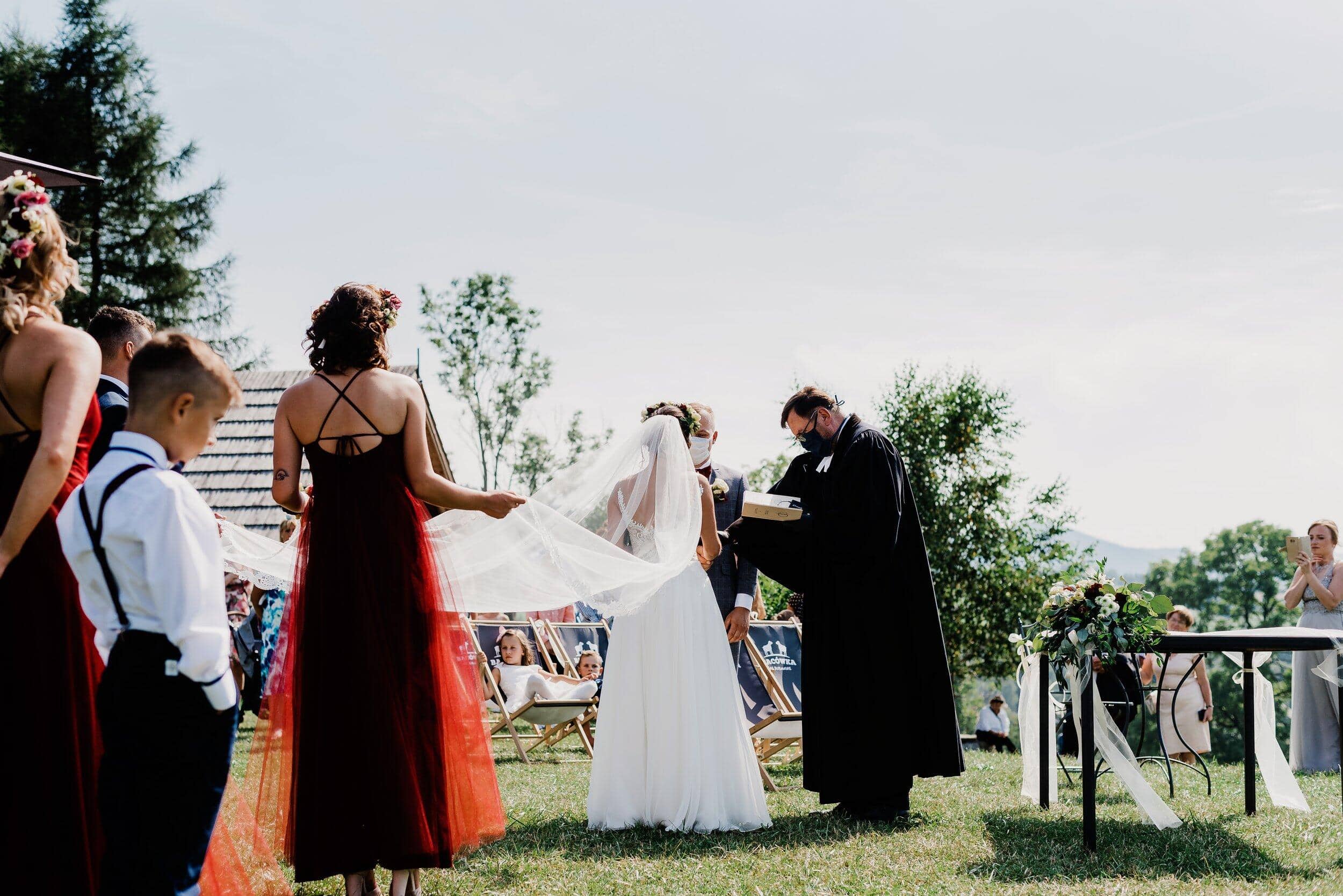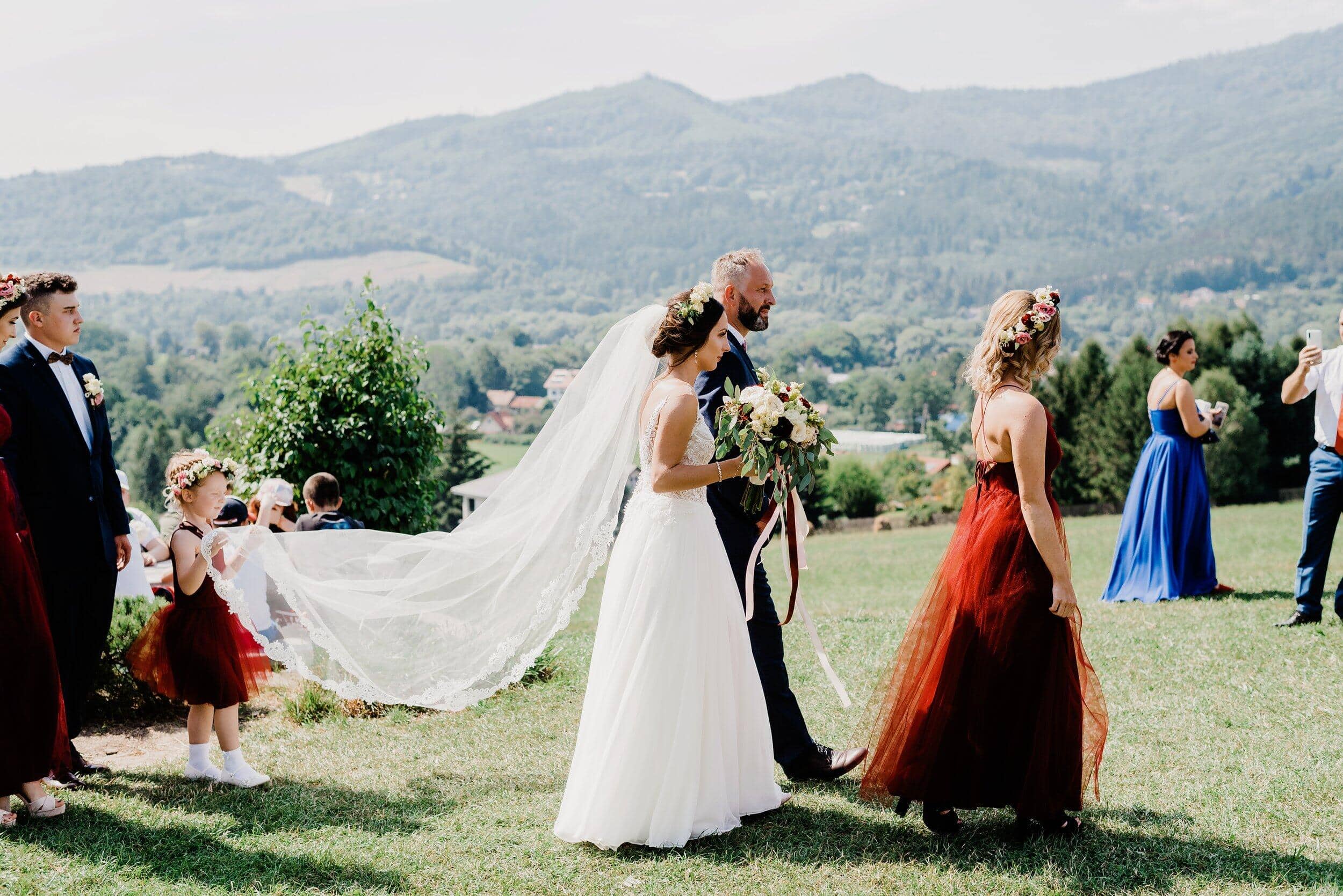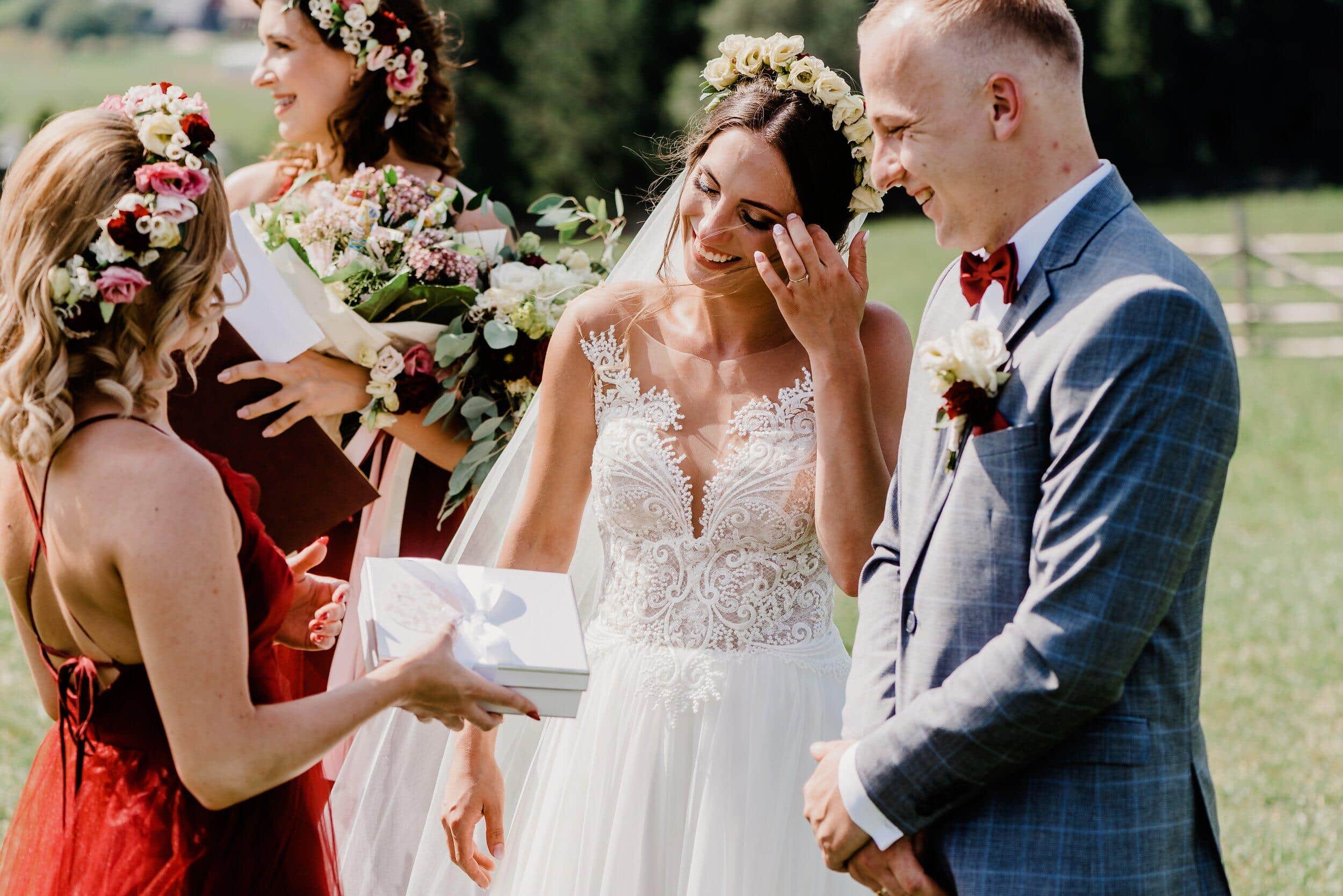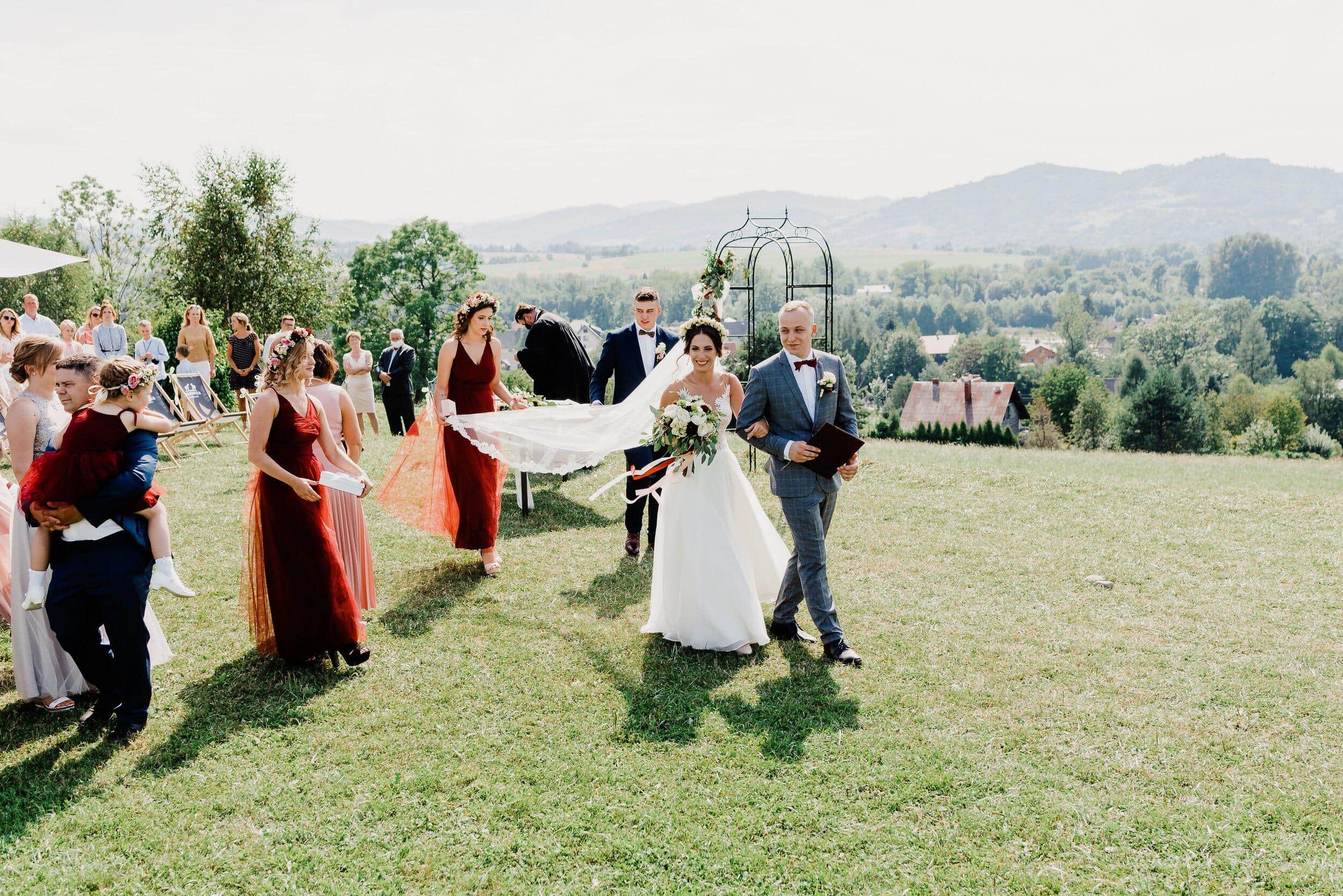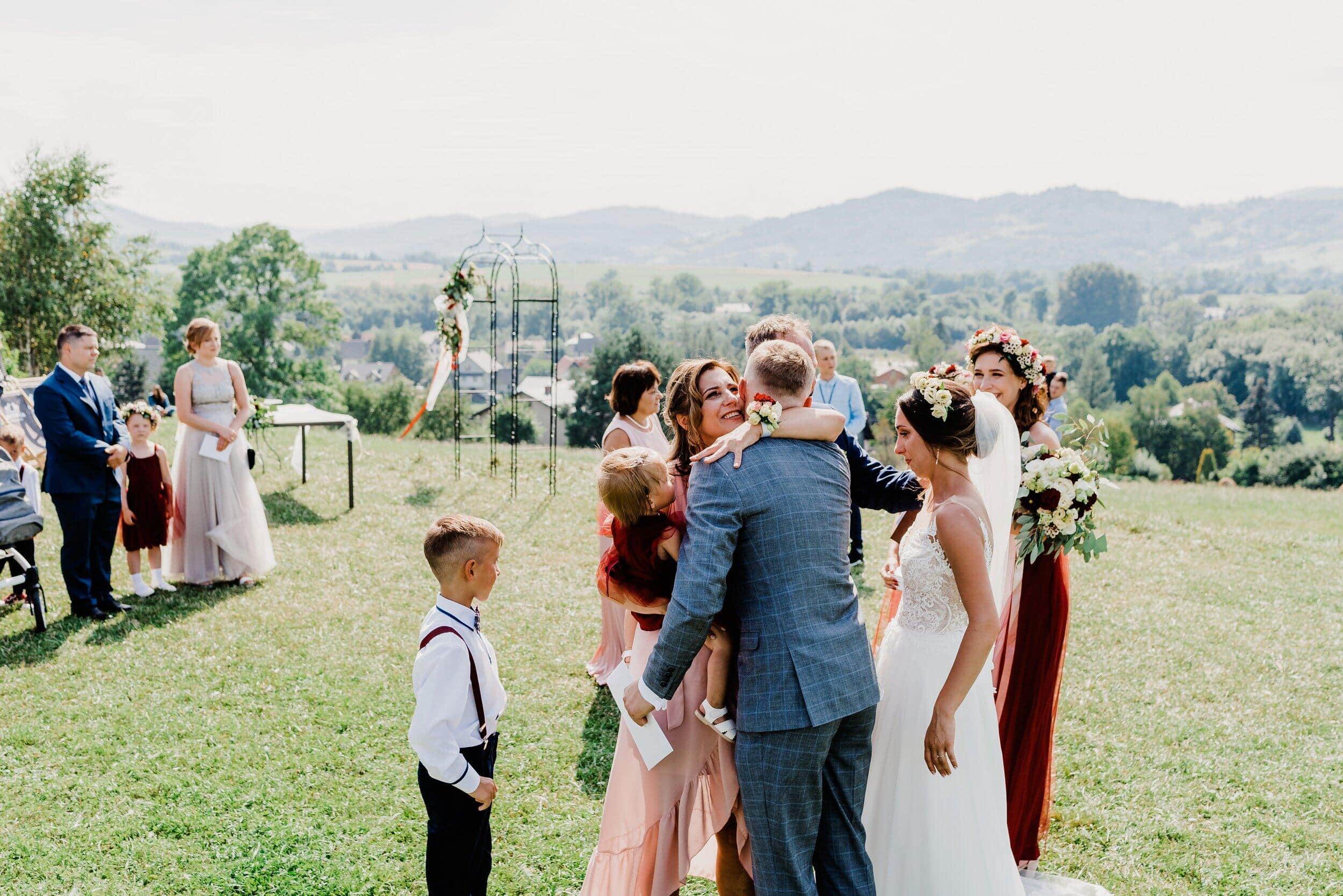 Przysięga składana w tak niezwykłym miejscu nabrała jeszcze większej mocy. Każde słowo było wypowiadane z głębi serca, a wzruszenie na twarzach gości tylko potwierdzało, że to był moment pełen magii. Kiedy ksiądz ogłosił ich mężem i żoną, zebrani wybuchnęli radosnym oklaskami, a górskie echo poniosło ich szczęście dalej, jakby chciało, by cała natura była świadkiem tej miłości.