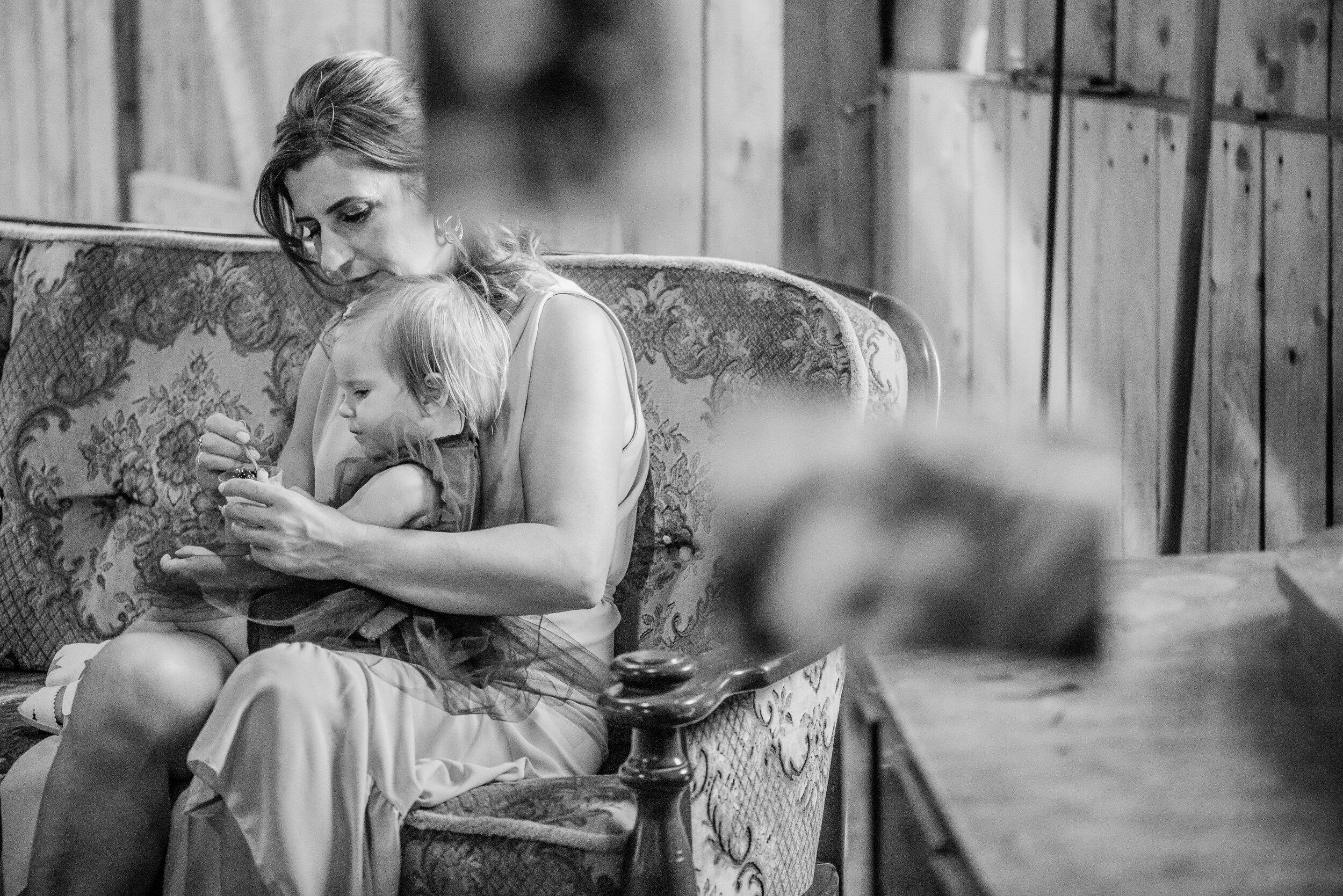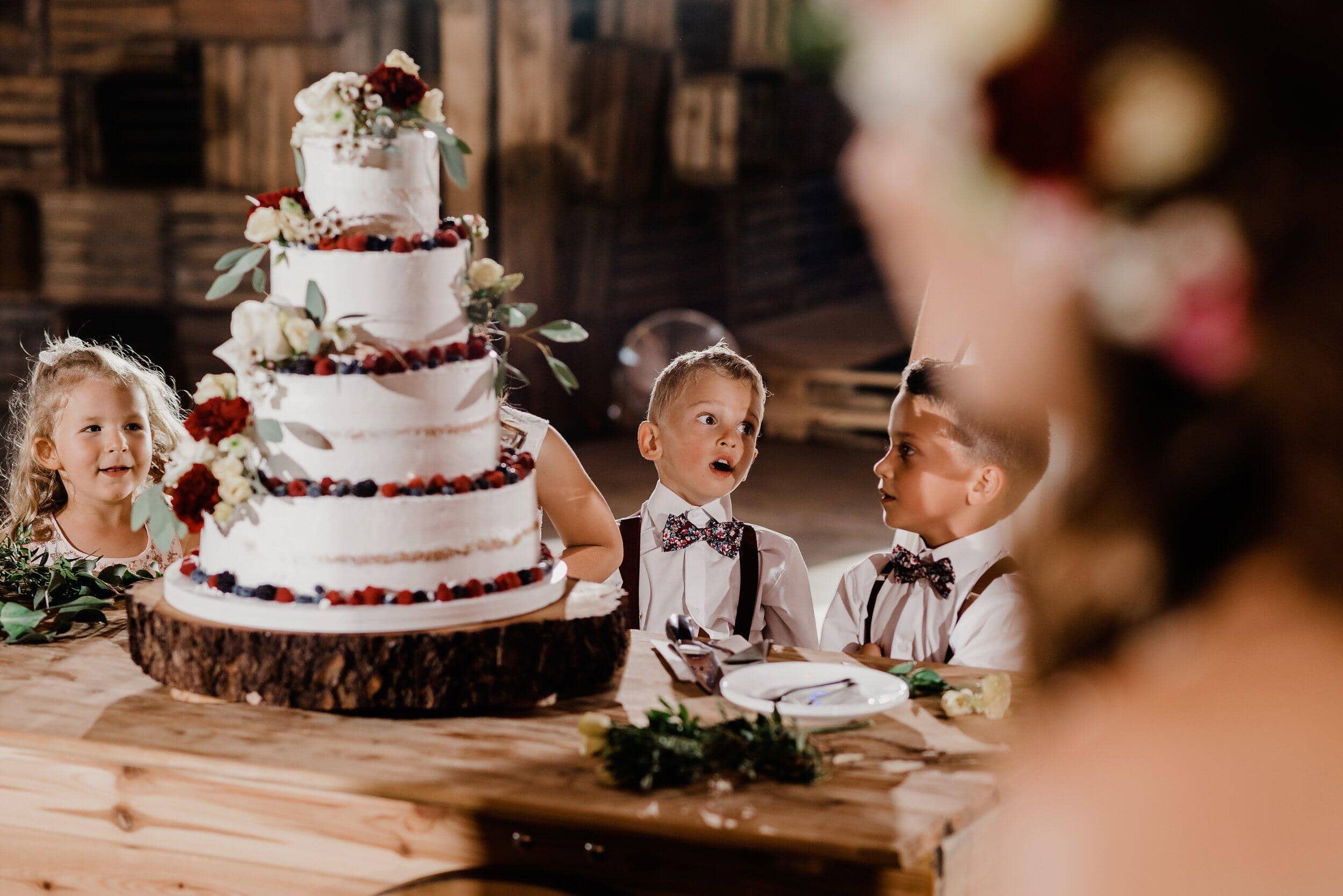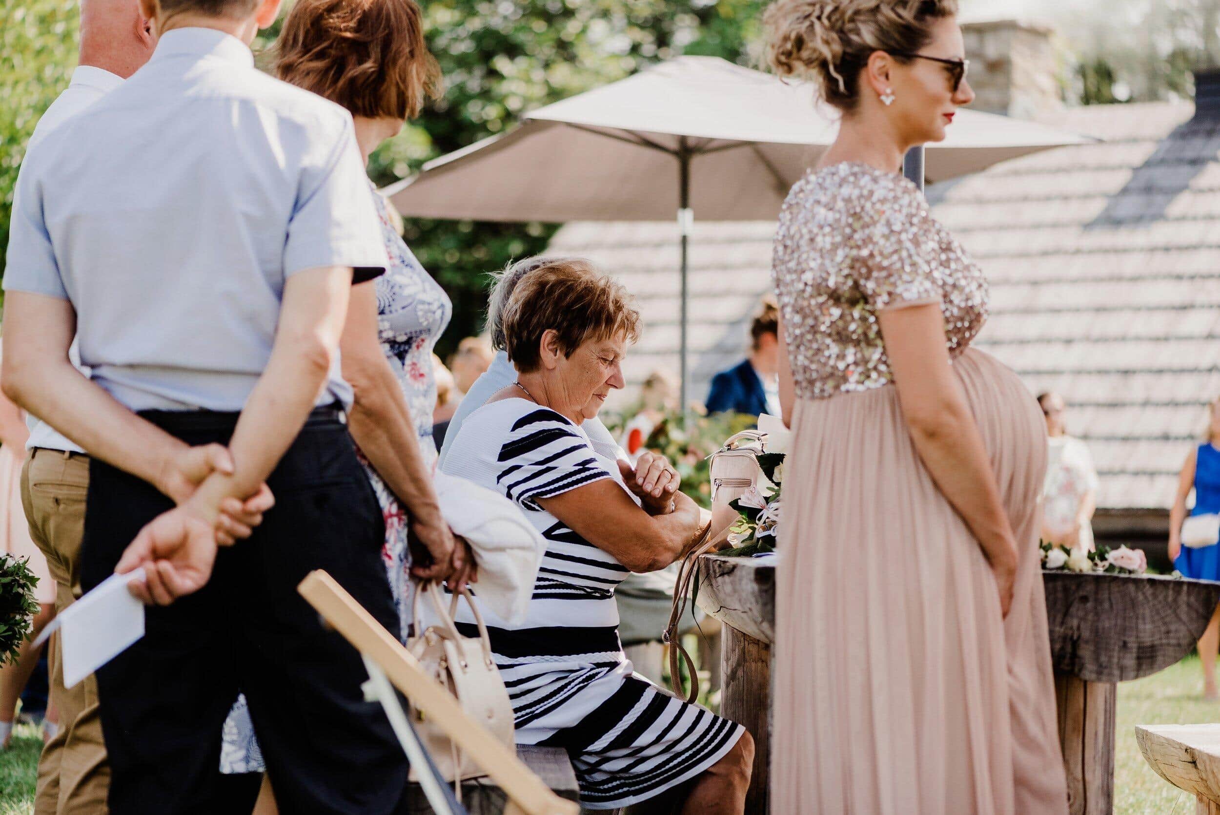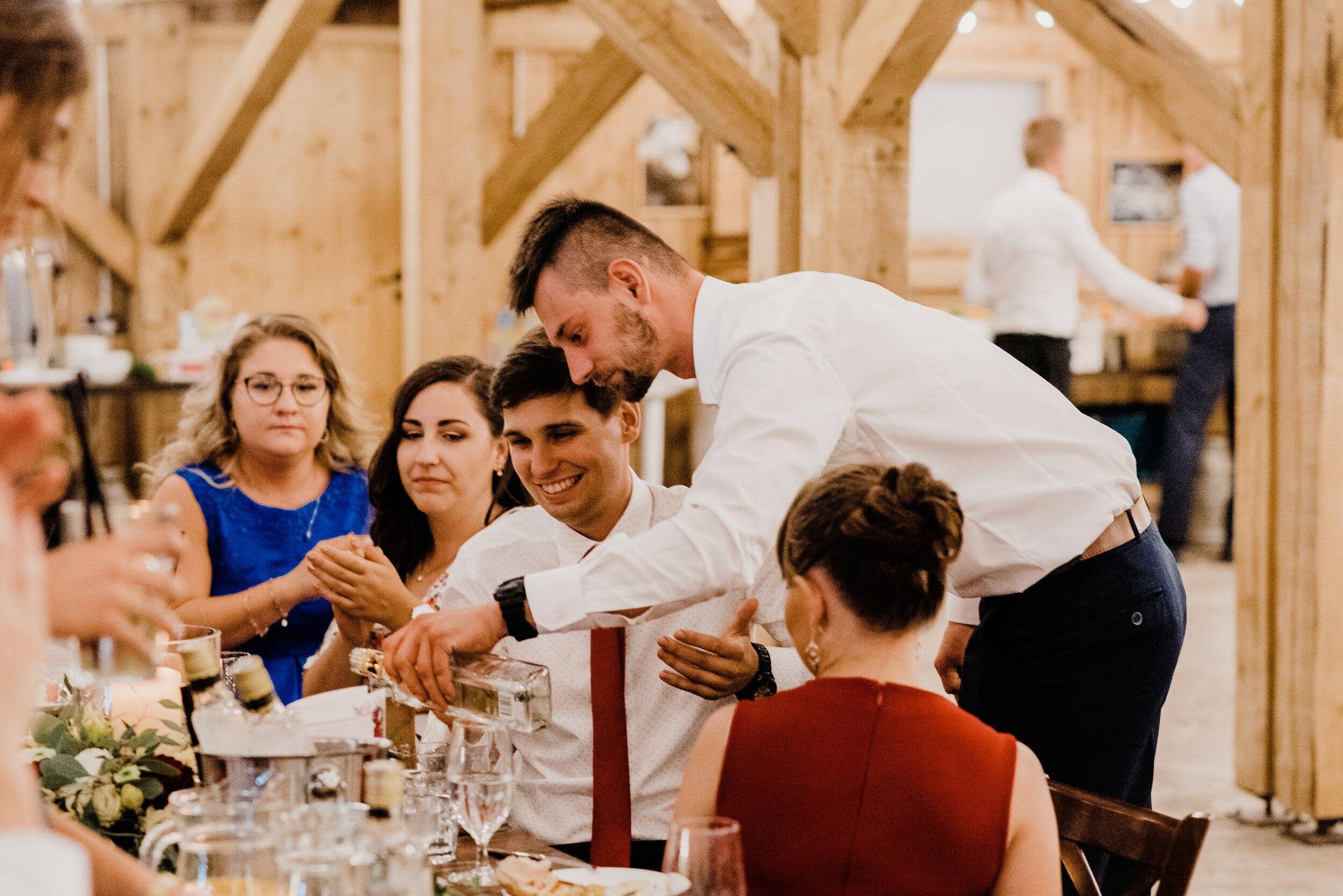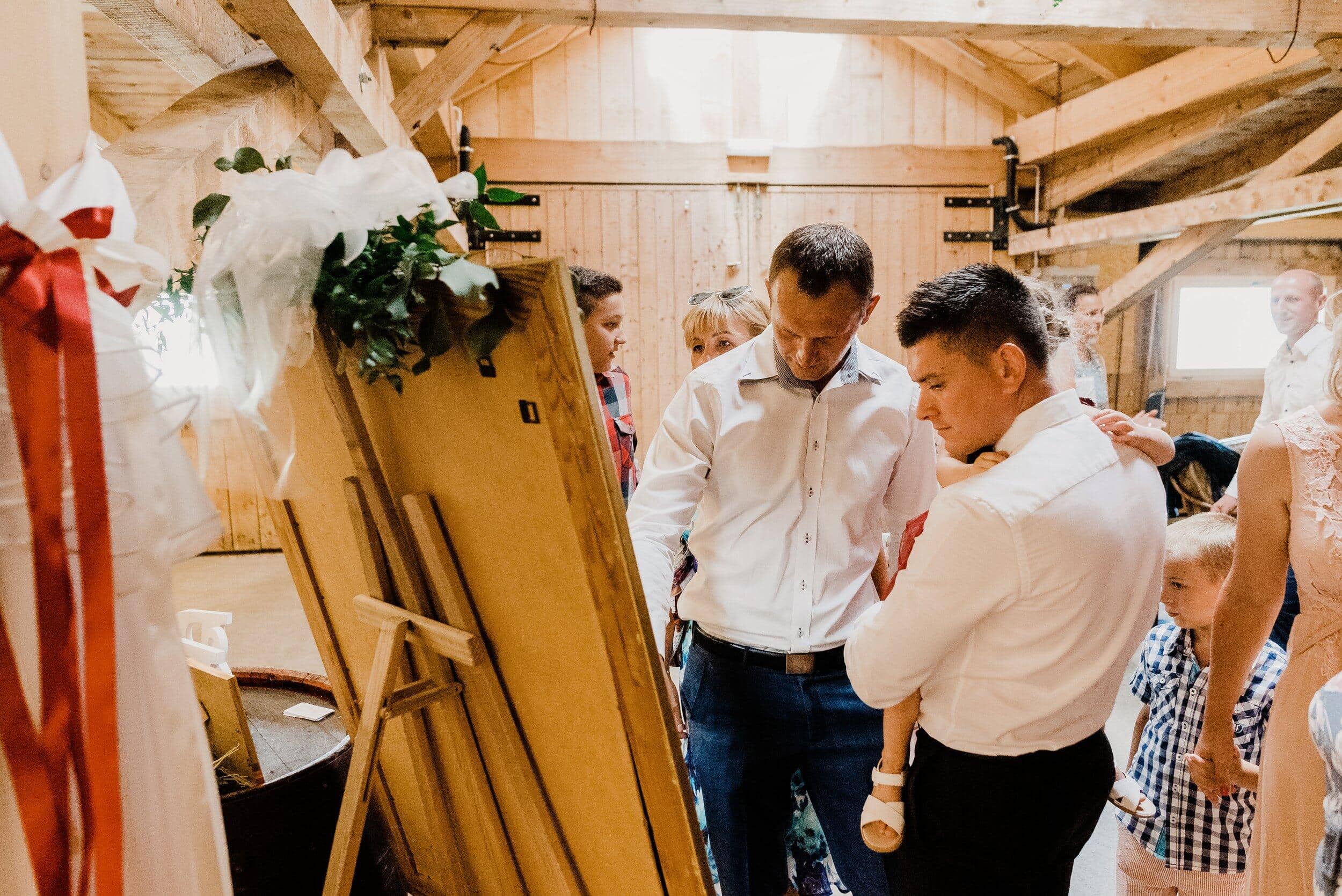 Podczas wesela nie brakowało momentów pełnych ciepła i śmiechu – goście chętnie przechadzali się między stołami, delektując się wiejskimi smakołykami, a dzieci biegały po drewnianej podłodze. Atmosfera była swobodna, wypełniona radosnymi rozmowami i szumem kieliszków wznoszących się w kolejnych toastach za Edytę i Piotrka. Było sielsko, było prawdziwie – bez sztucznej elegancji, za to z ogromem serca i szczerej radości.