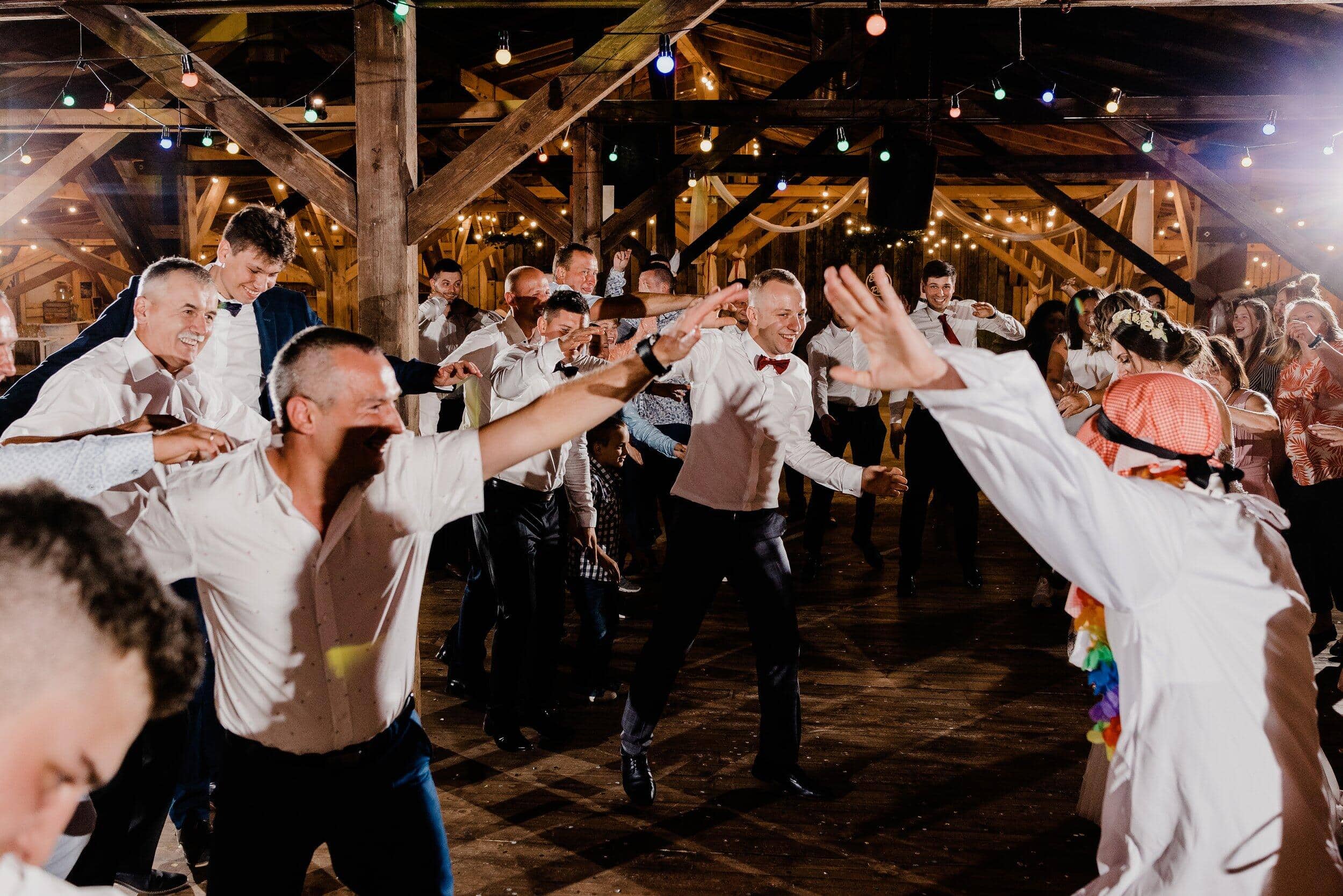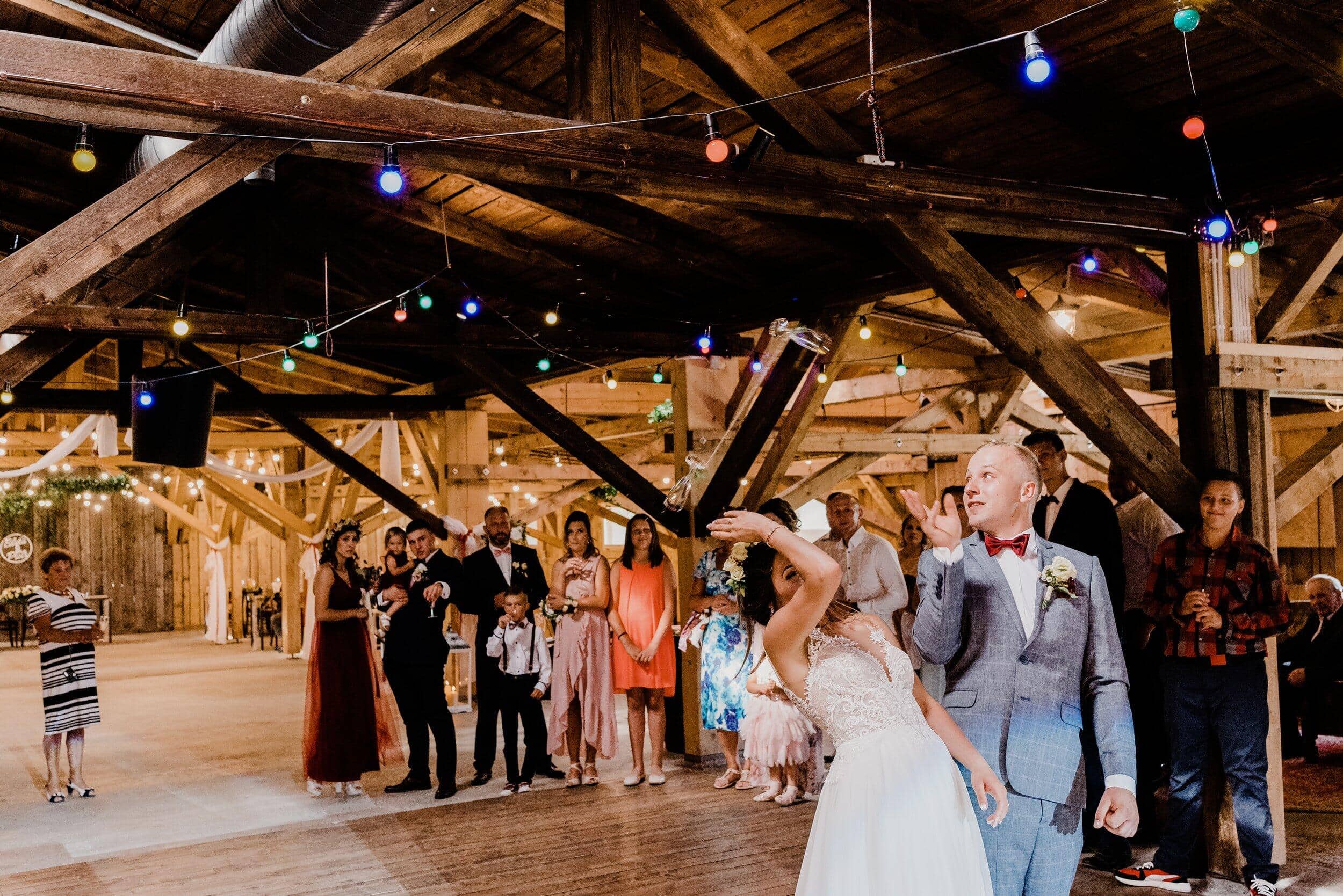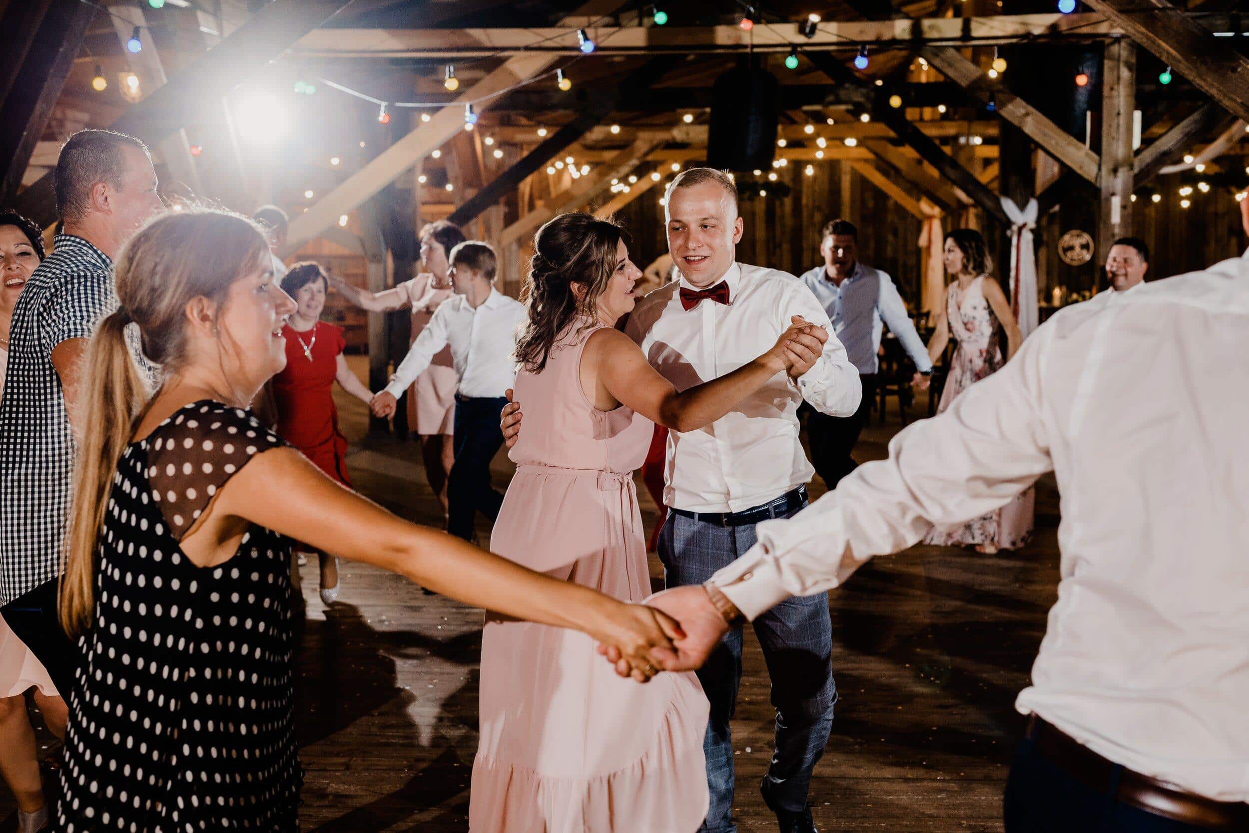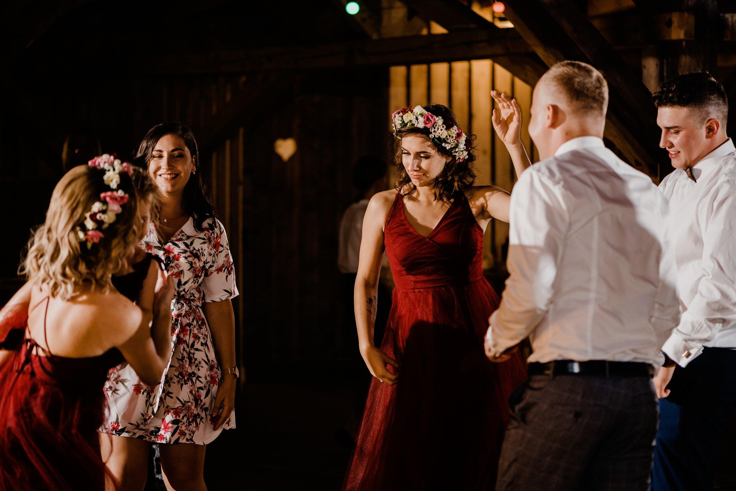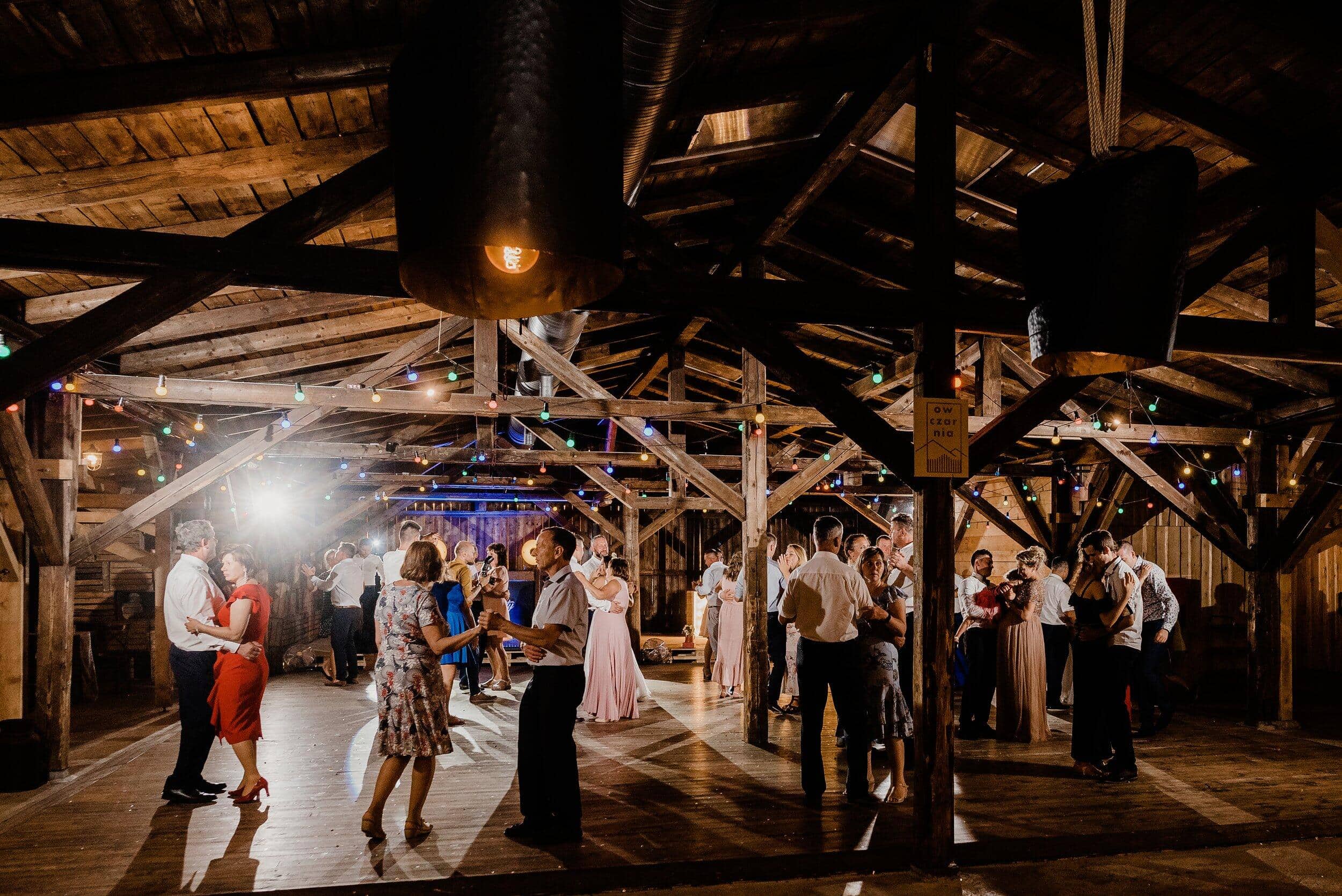 Nie zabrakło spontanicznych tańców, wzruszających momentów i śmiechu, który odbijał się od drewnianych ścian Owczarni. W powietrzu unosiły się dźwięki największych hitów, a nogi same rwały się do tańca. Śmiech i okrzyki radości towarzyszyły każdej piosence, a niektórzy goście na chwilę wychodzili na zewnątrz, by złapać oddech i od razu wracali na parkiet, jakby nie chcieli przegapić ani sekundy tej szalonej nocy. To było wesele w stylu boho i rustykalnym, które idealnie oddawało charakter Edyty i Piotrka – szczere, pełne miłości i autentycznej radości.