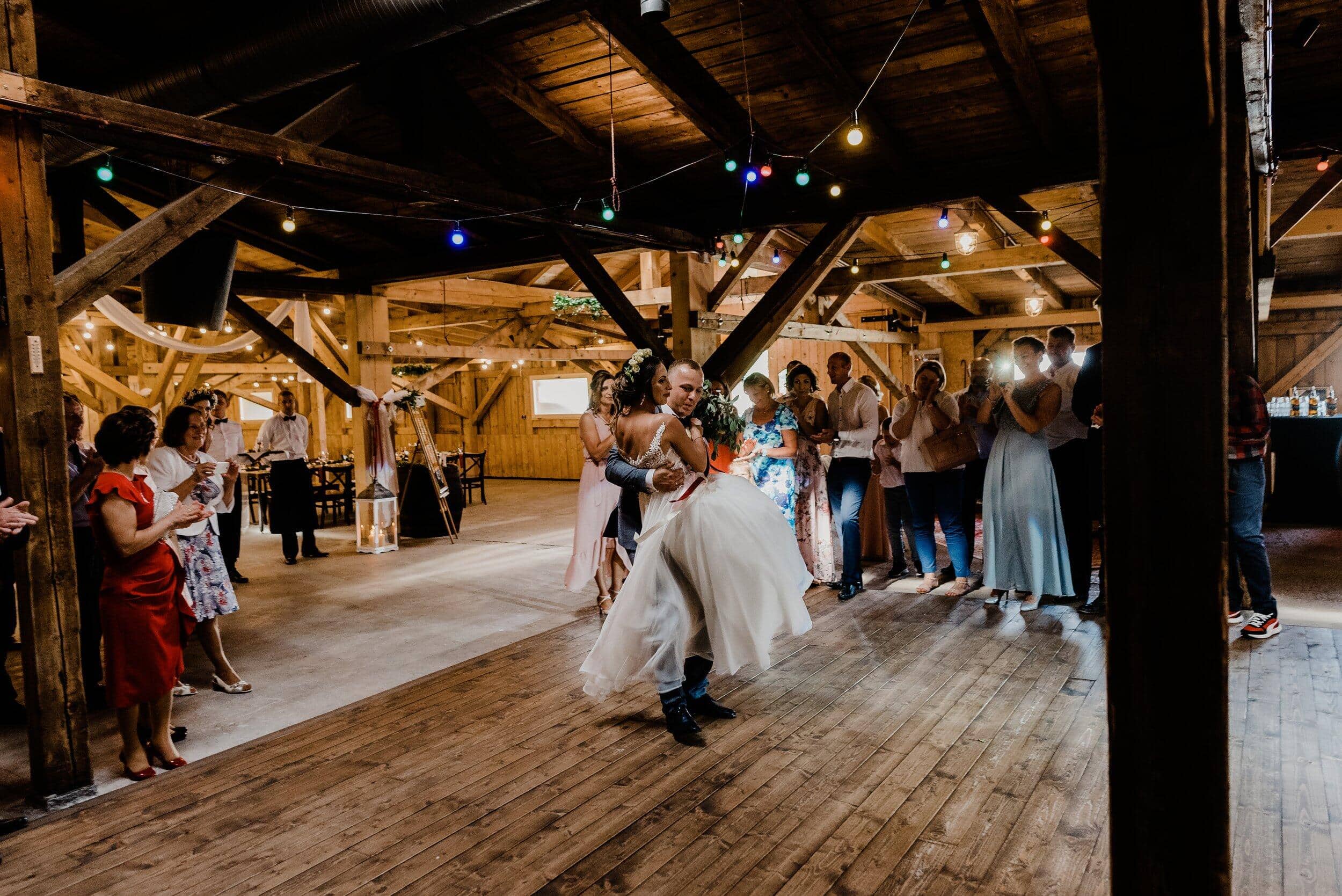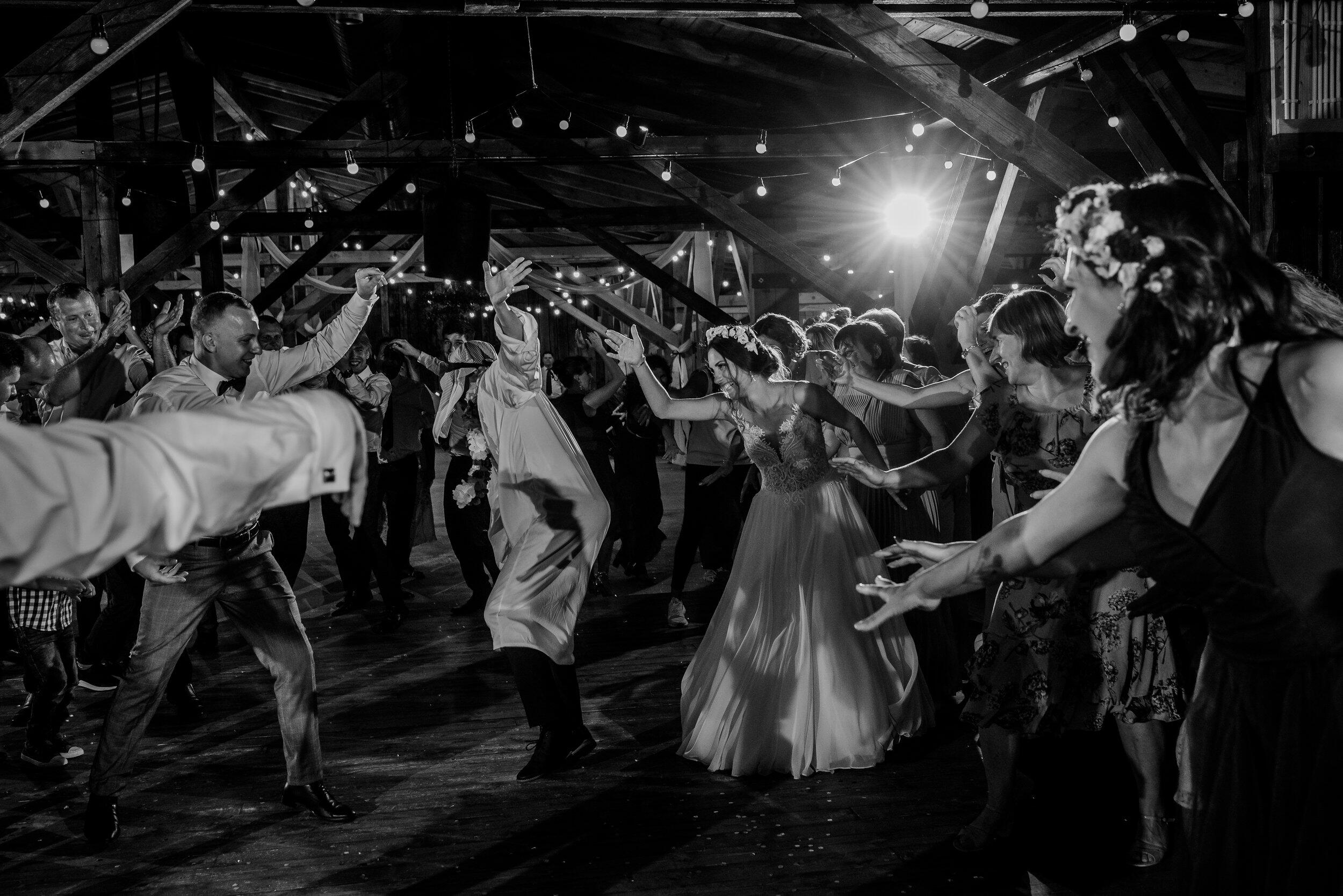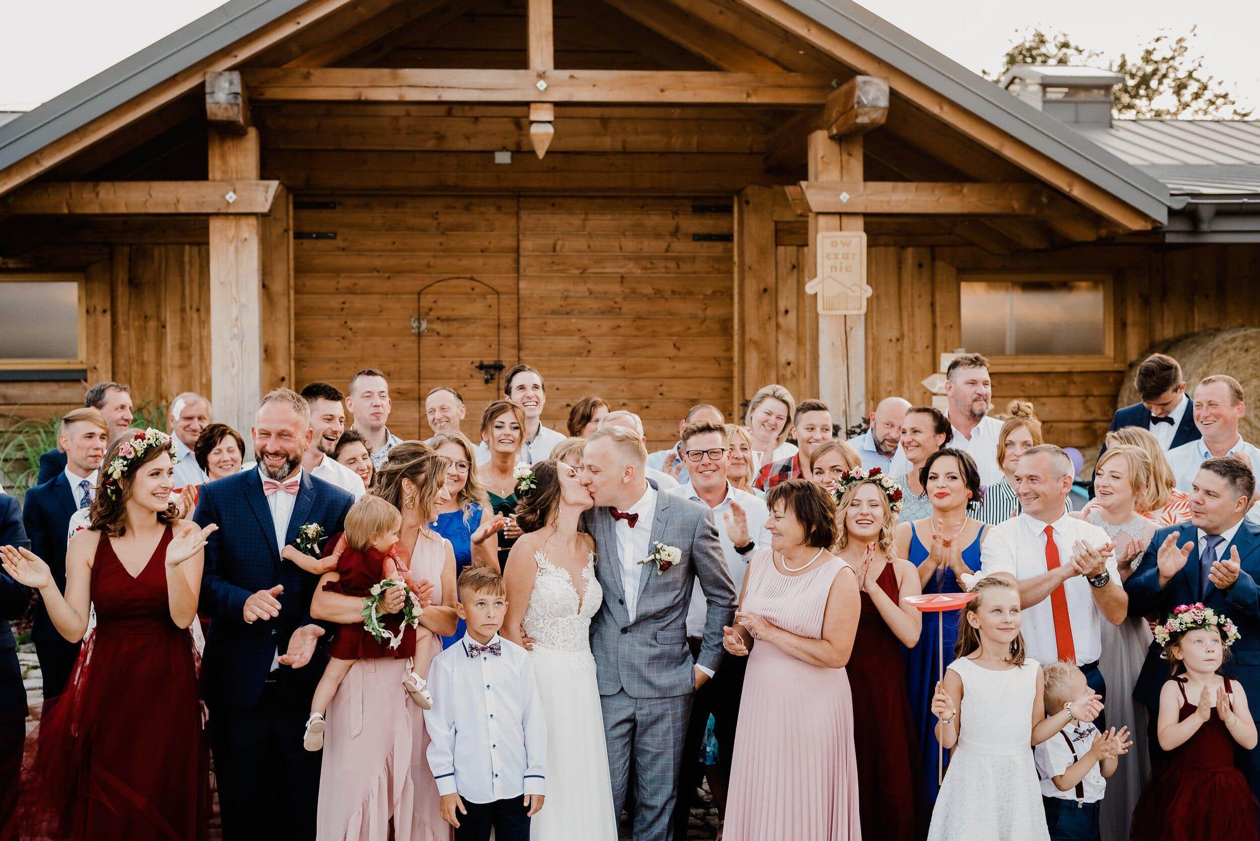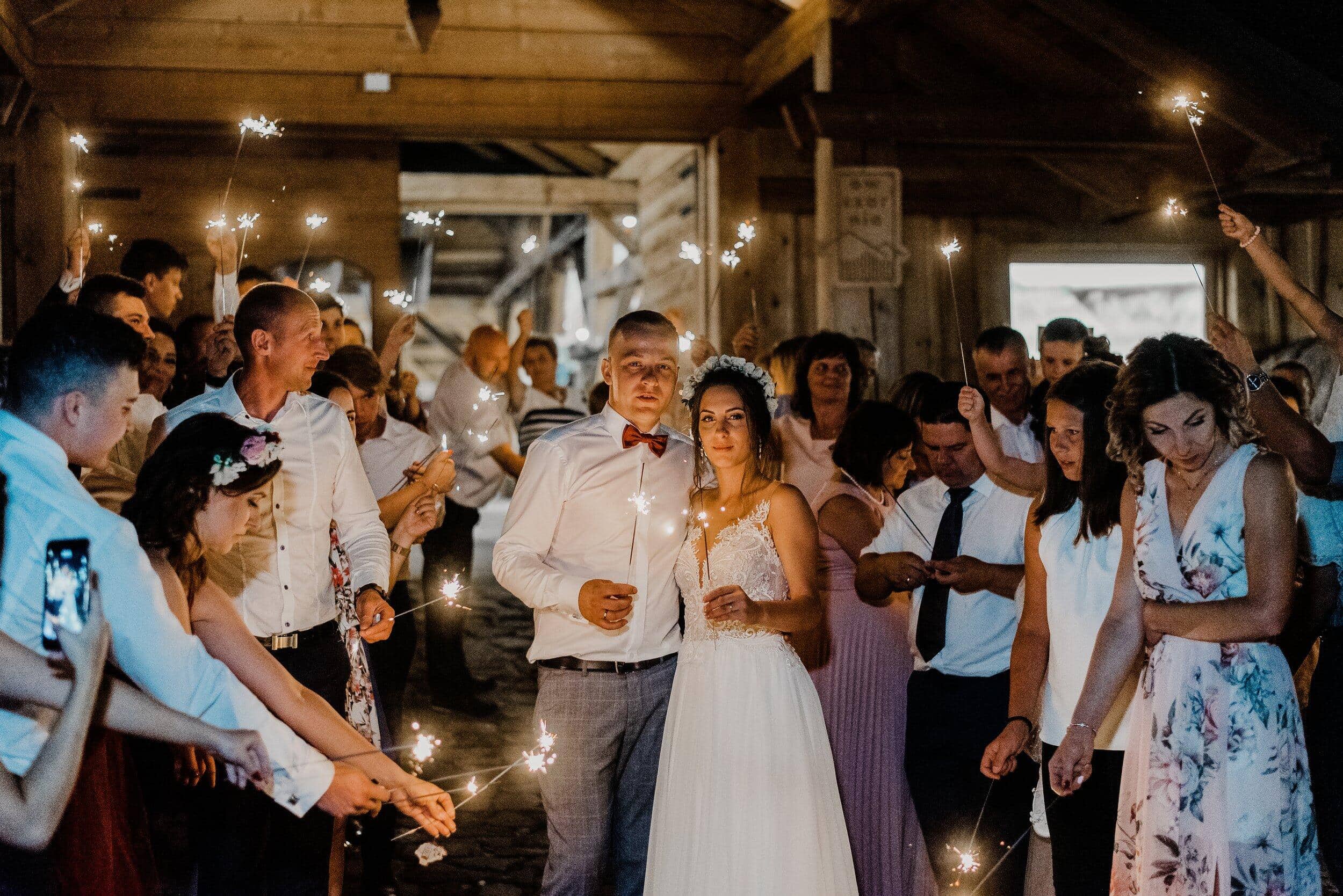 Nie zabrakło spontanicznych tańców, wzruszających momentów i śmiechu, który odbijał się od drewnianych ścian Owczarni. W powietrzu unosiły się dźwięki największych hitów, a nogi same rwały się do tańca. Śmiech i okrzyki radości towarzyszyły każdej piosence, a niektórzy goście na chwilę wychodzili na zewnątrz, by złapać oddech i od razu wracali na parkiet, jakby nie chcieli przegapić ani sekundy tej szalonej nocy. To było wesele w stylu boho i rustykalnym, które idealnie oddawało charakter Edyty i Piotrka – szczere, pełne miłości i autentycznej radości.