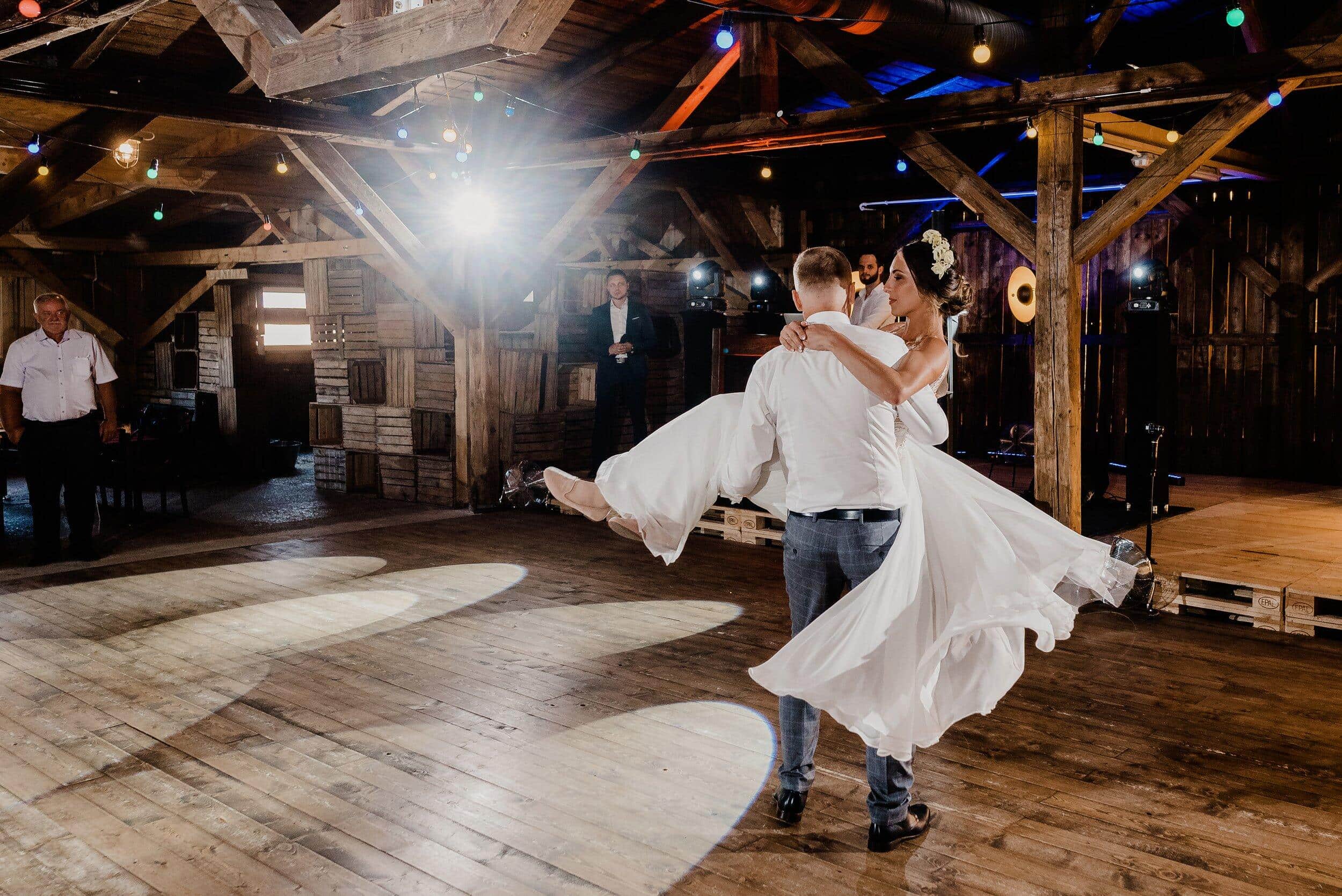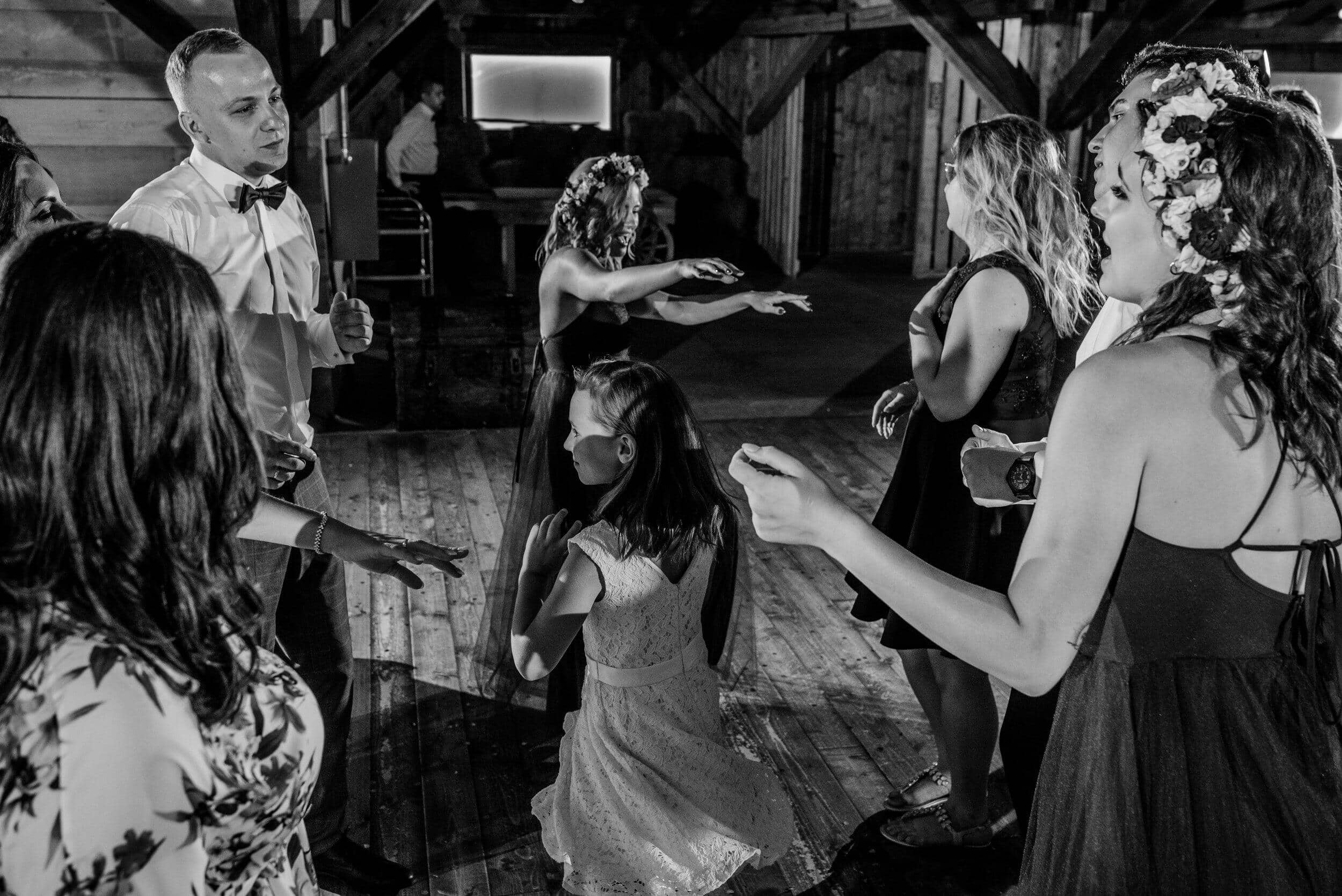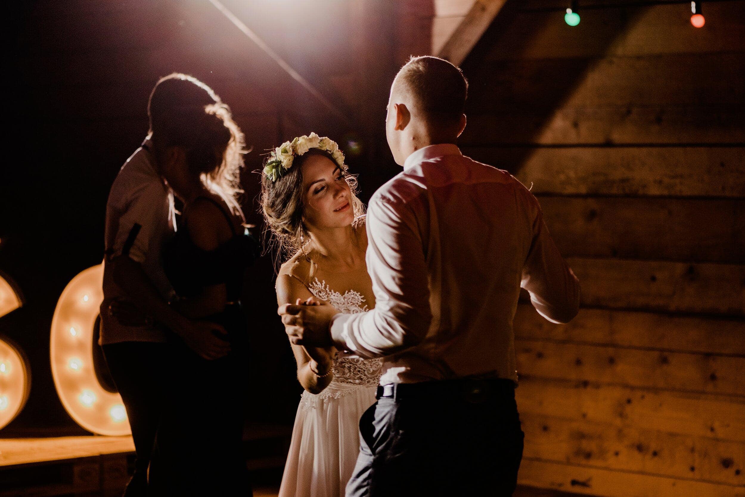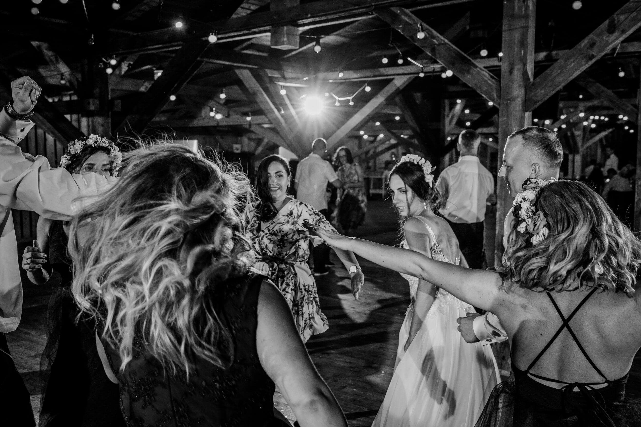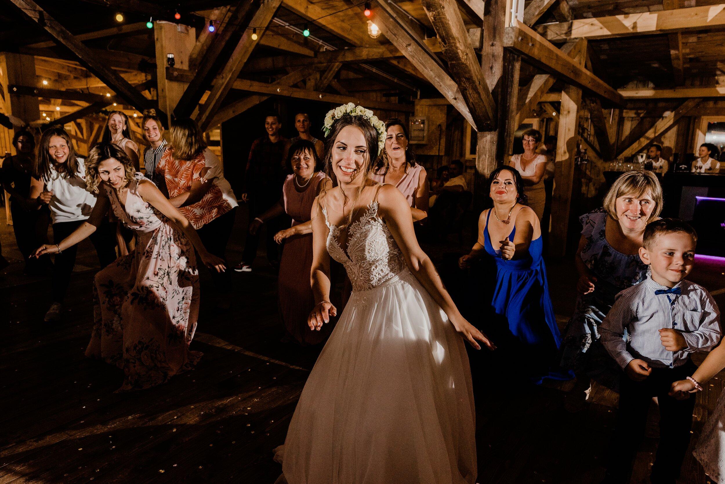 Nie zabrakło spontanicznych tańców, wzruszających momentów i śmiechu, który odbijał się od drewnianych ścian Owczarni. W powietrzu unosiły się dźwięki największych hitów, a nogi same rwały się do tańca. Śmiech i okrzyki radości towarzyszyły każdej piosence, a niektórzy goście na chwilę wychodzili na zewnątrz, by złapać oddech i od razu wracali na parkiet, jakby nie chcieli przegapić ani sekundy tej szalonej nocy. To było wesele w stylu boho i rustykalnym, które idealnie oddawało charakter Edyty i Piotrka – szczere, pełne miłości i autentycznej radości.