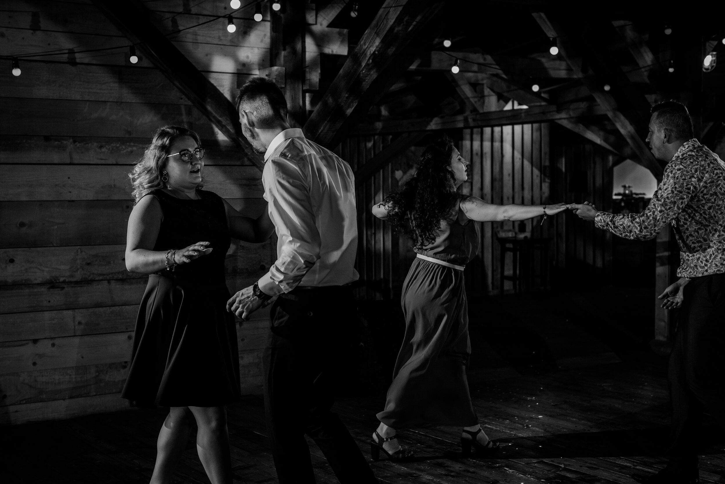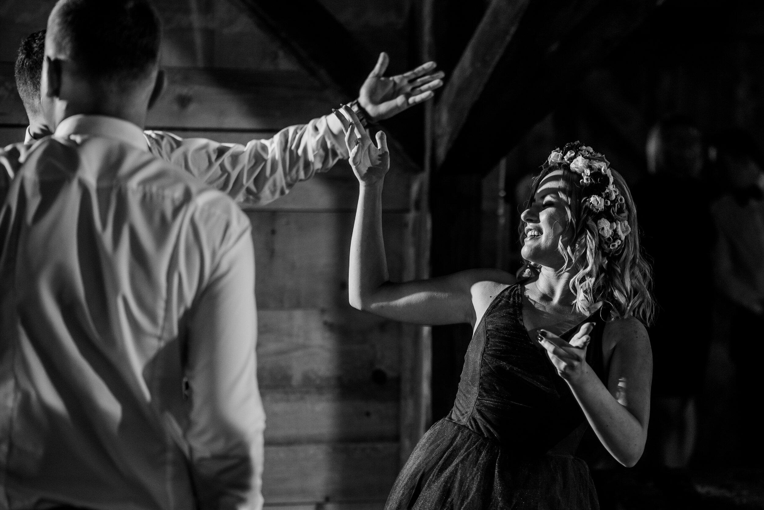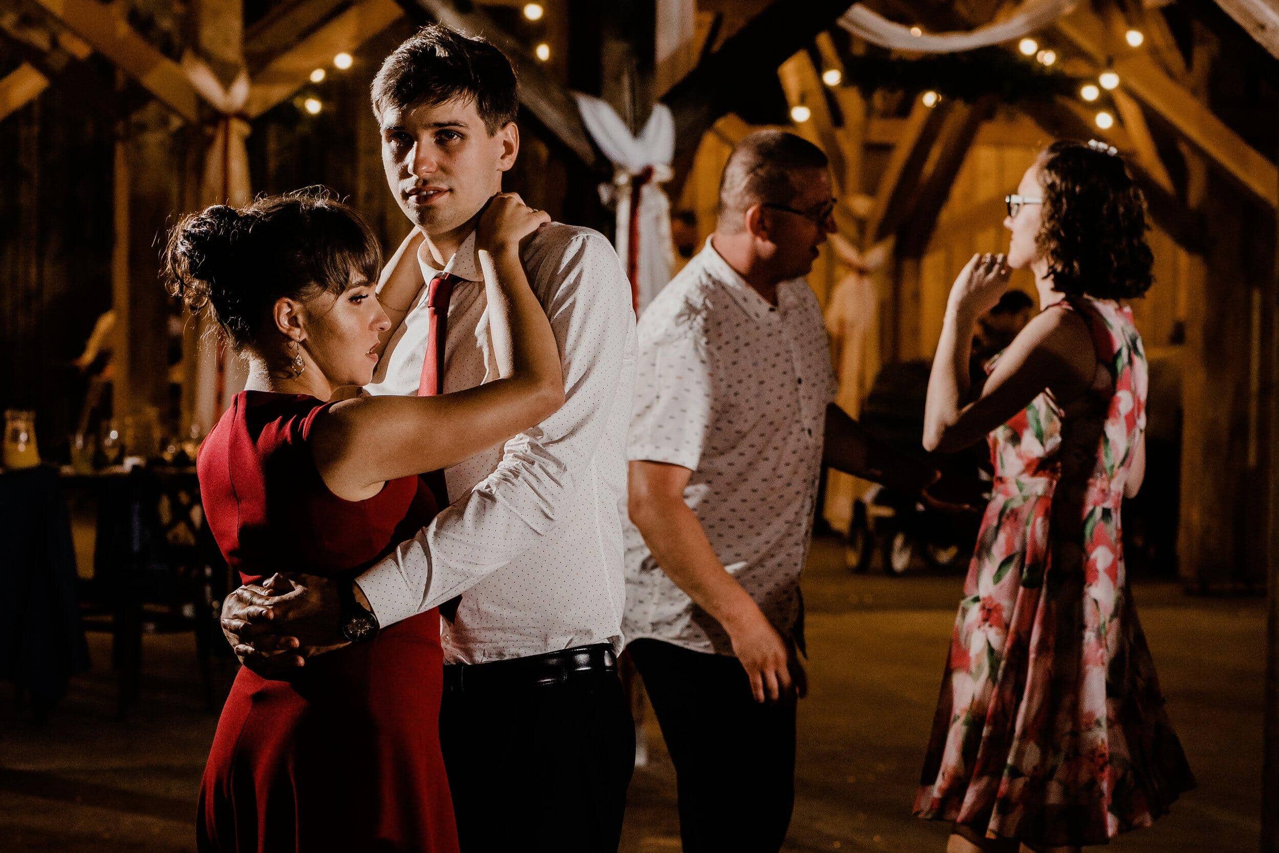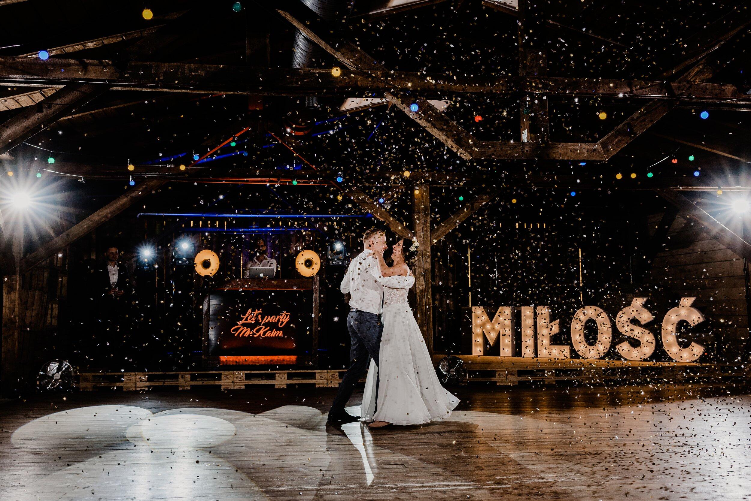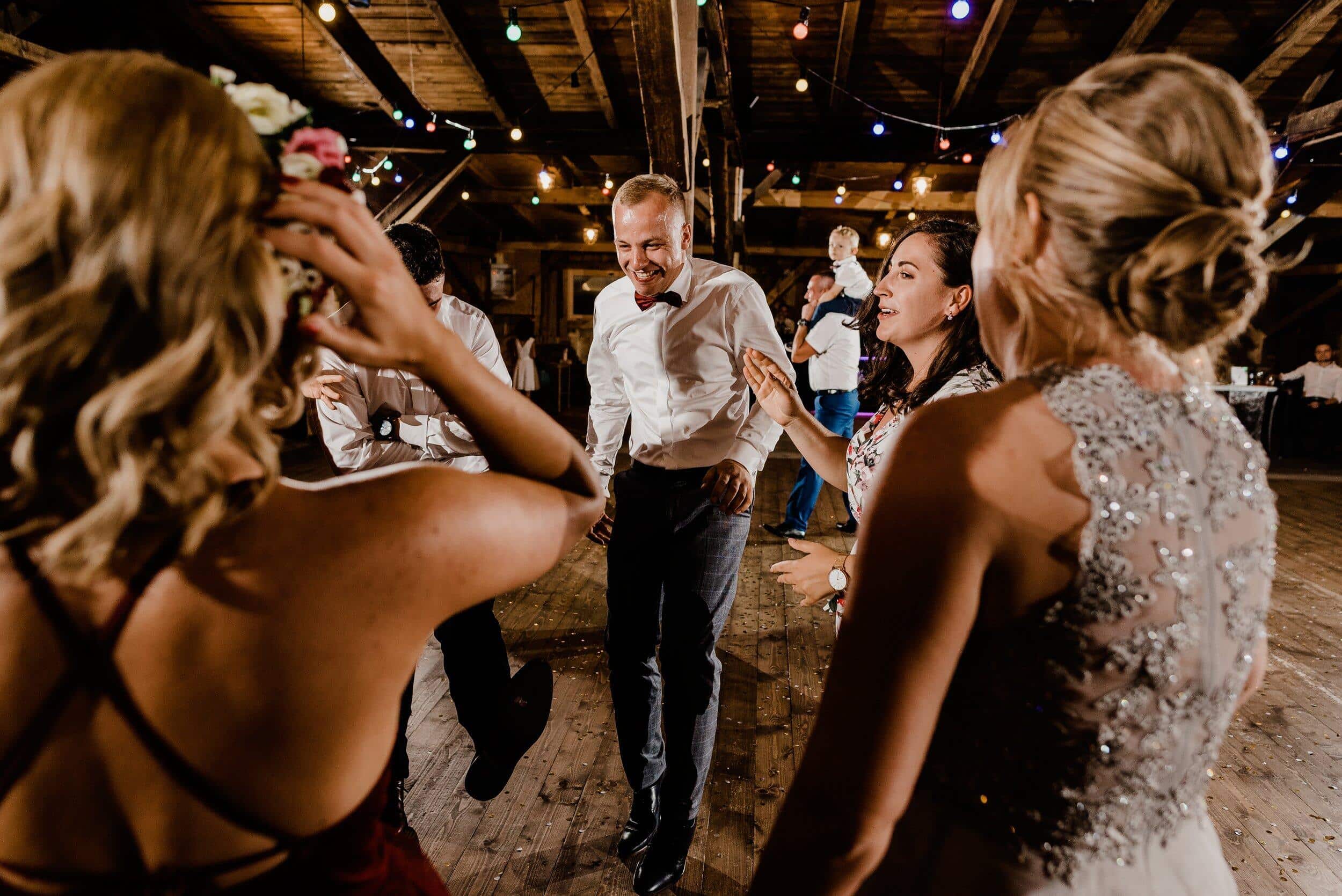Nie zabrakło spontanicznych tańców, wzruszających momentów i śmiechu, który odbijał się od drewnianych ścian Owczarni. W powietrzu unosiły się dźwięki największych hitów, a nogi same rwały się do tańca. Śmiech i okrzyki radości towarzyszyły każdej piosence, a niektórzy goście na chwilę wychodzili na zewnątrz, by złapać oddech i od razu wracali na parkiet, jakby nie chcieli przegapić ani sekundy tej szalonej nocy. To było wesele w stylu boho i rustykalnym, które idealnie oddawało charakter Edyty i Piotrka – szczere, pełne miłości i autentycznej radości.