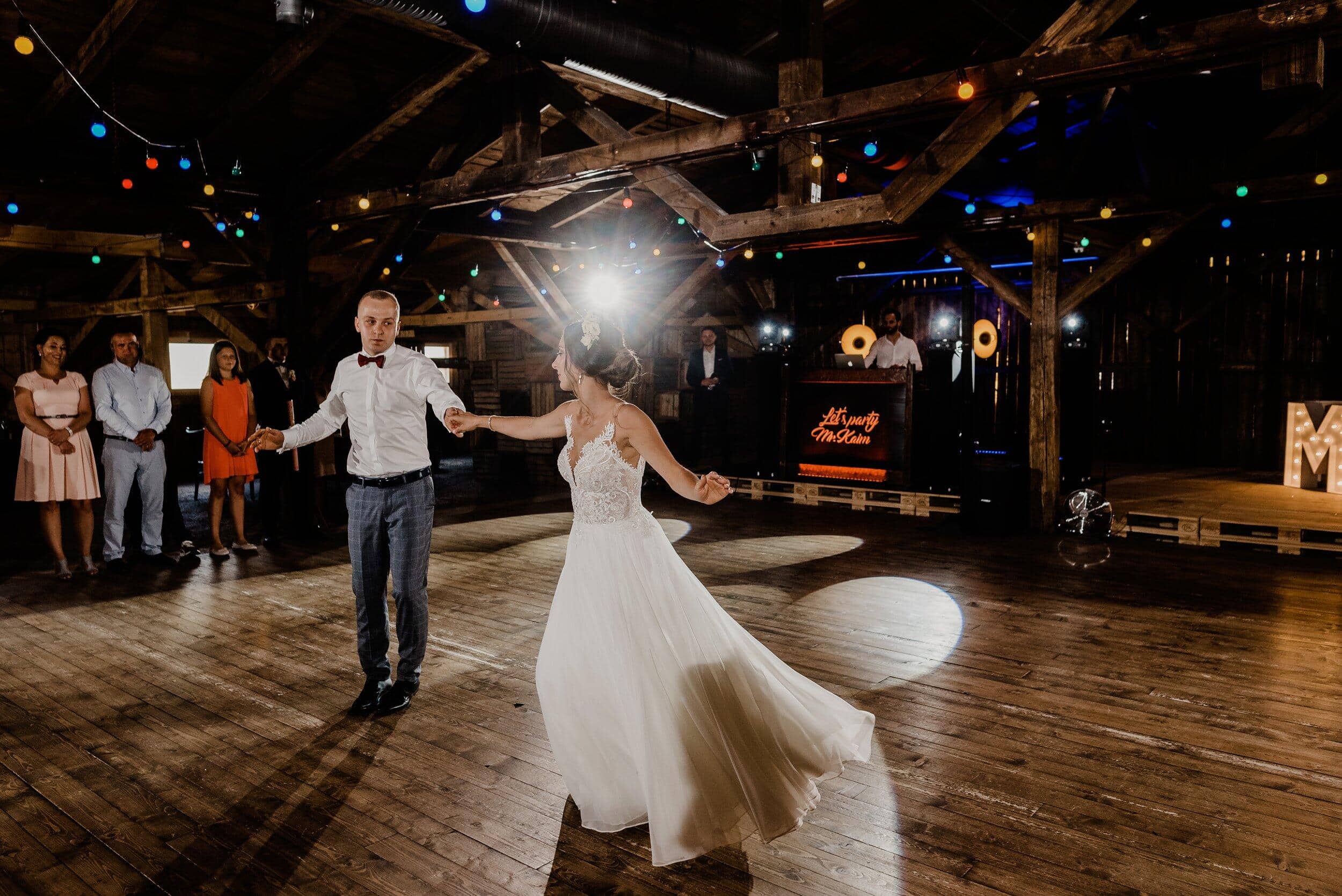 Nie samym wystrojem i klimatem żyje wesele – liczy się energia i dobra zabawa! A o to zadbał niezastąpiony Łukasz Piątek, znany jako DJ Peel. Ten człowiek to prawdziwy wulkan energii i doskonale wie, jak sprawić, żeby parkiet płonął! Gdy tylko rozbrzmiały pierwsze dźwięki muzyki, goście bez zastanowienia ruszyli do tańca i nie schodzili z parkietu do białego rana.